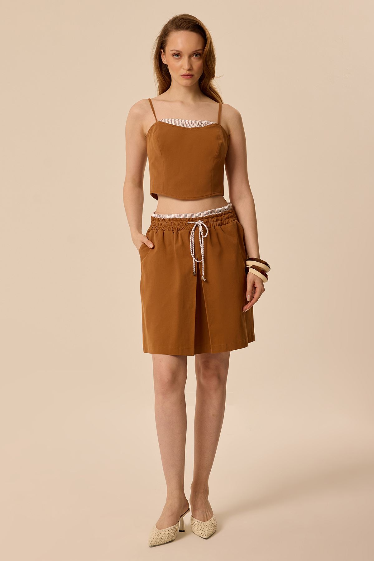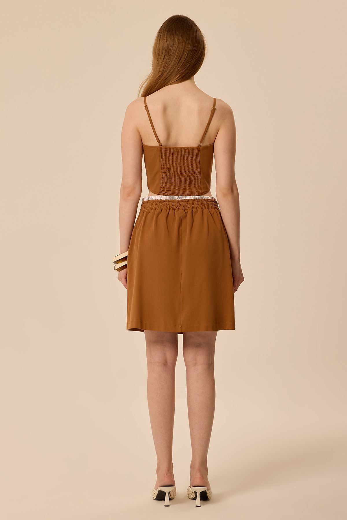 Gabardin Mini Etek Taba